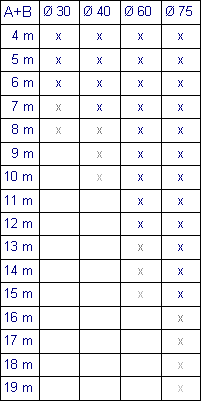 Größentabelle für Rundspiegel, Kontrollspiegel,